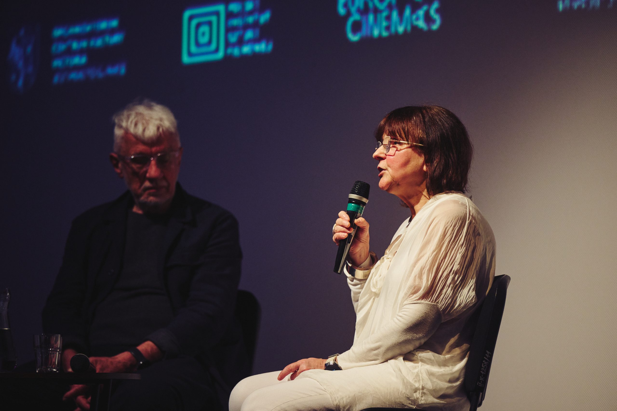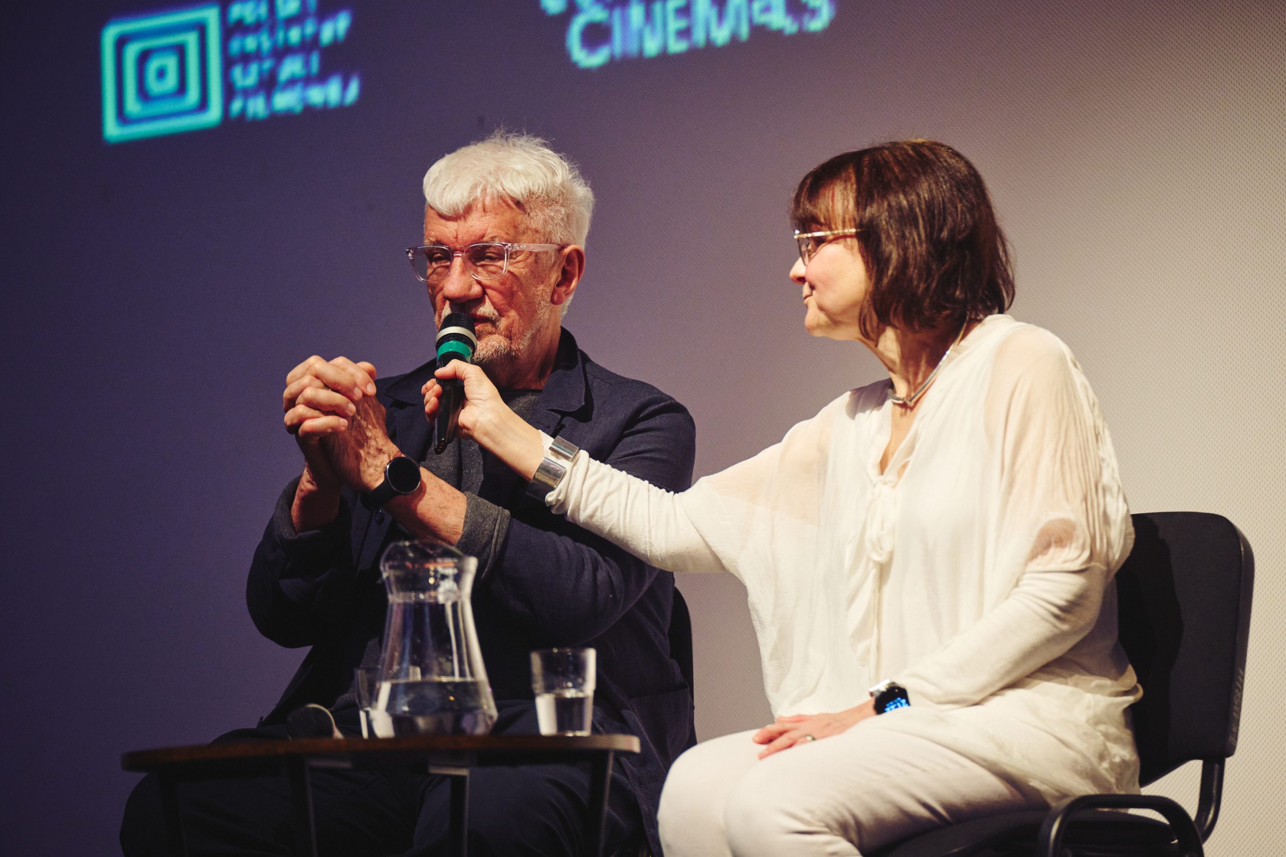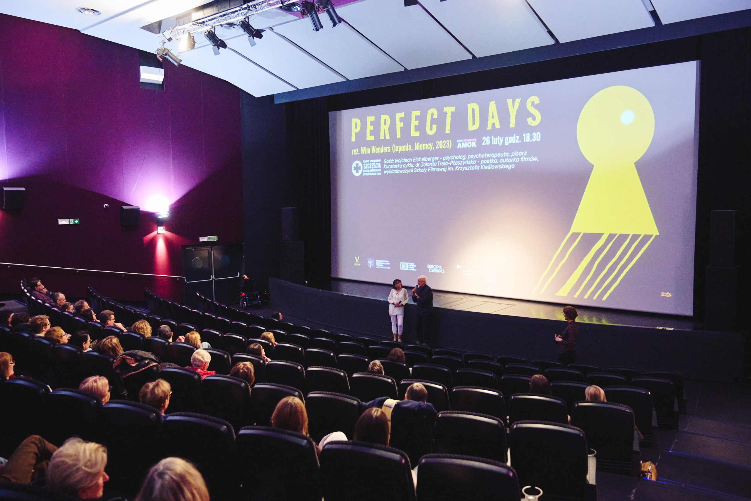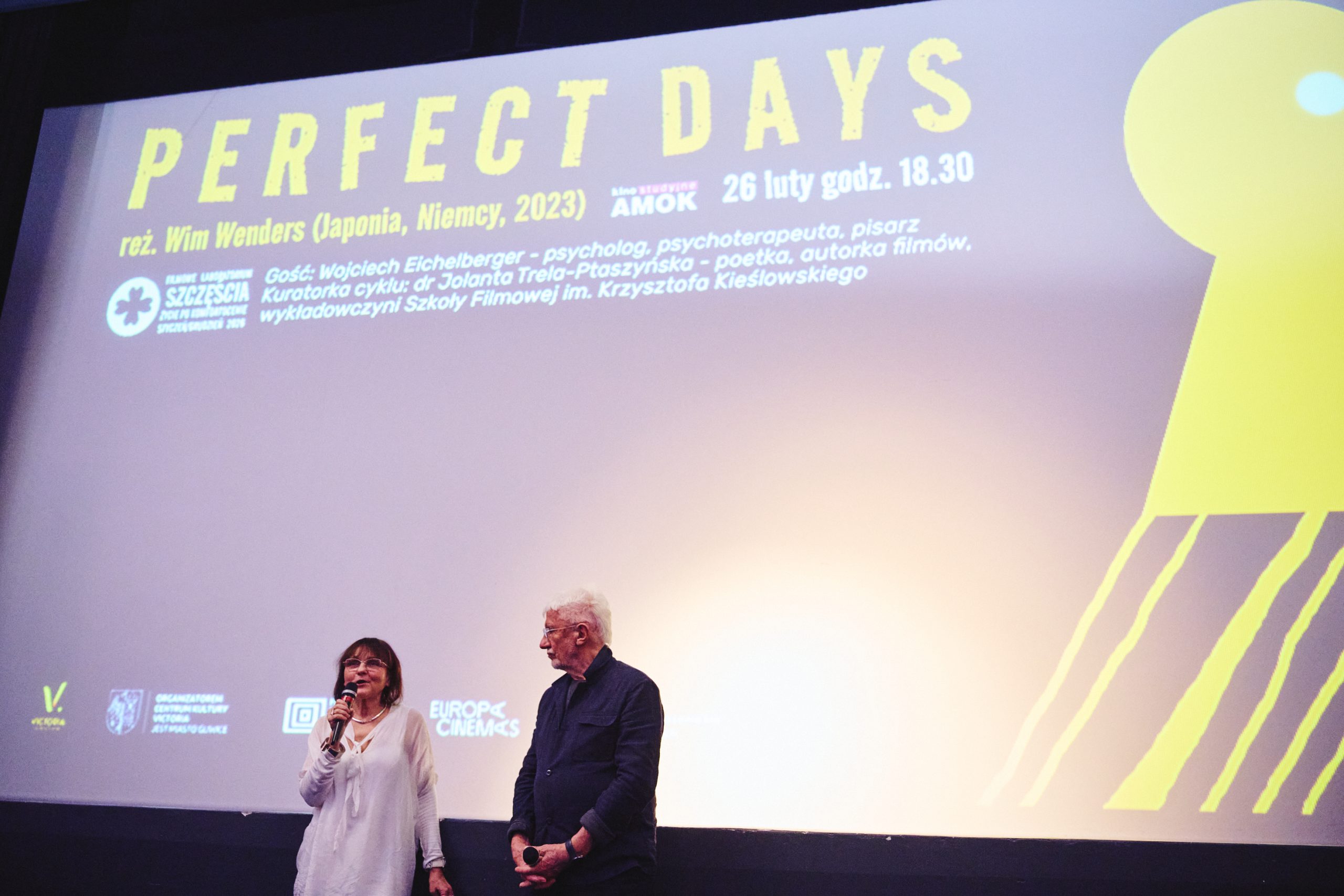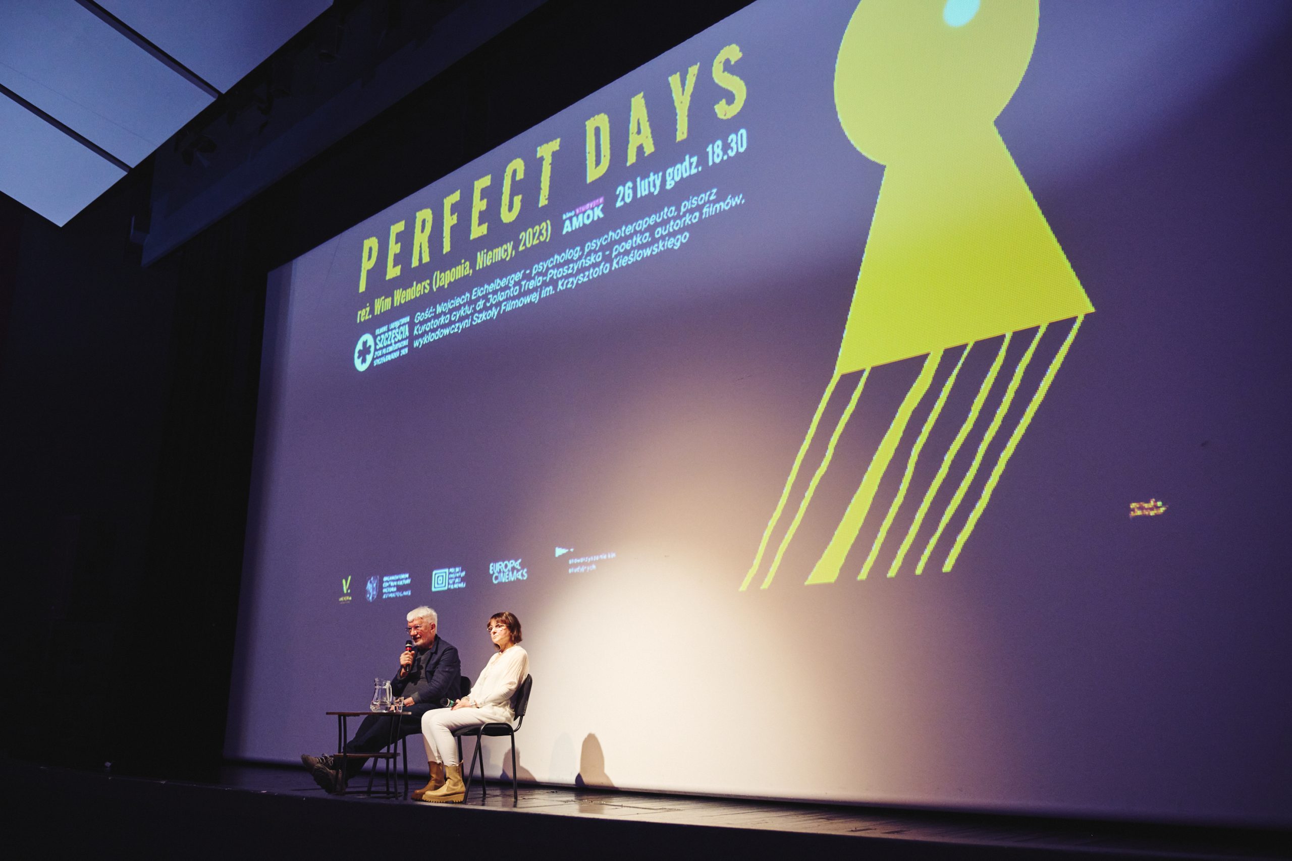 26 lutego 226 naszym gościem był Wojciech Eichelberger, z którym kuratorka cyklu Filmowe Laboratorium Szczęścia, Jola Trela-Ptaszyńska rozmawiała na temat "Zwyczajność jako praktyka szczęścia". Pretekstem do dyskusji był pokaz filmu PERFECT DAYS Wima Wendersa. Fot. Michał Buksa